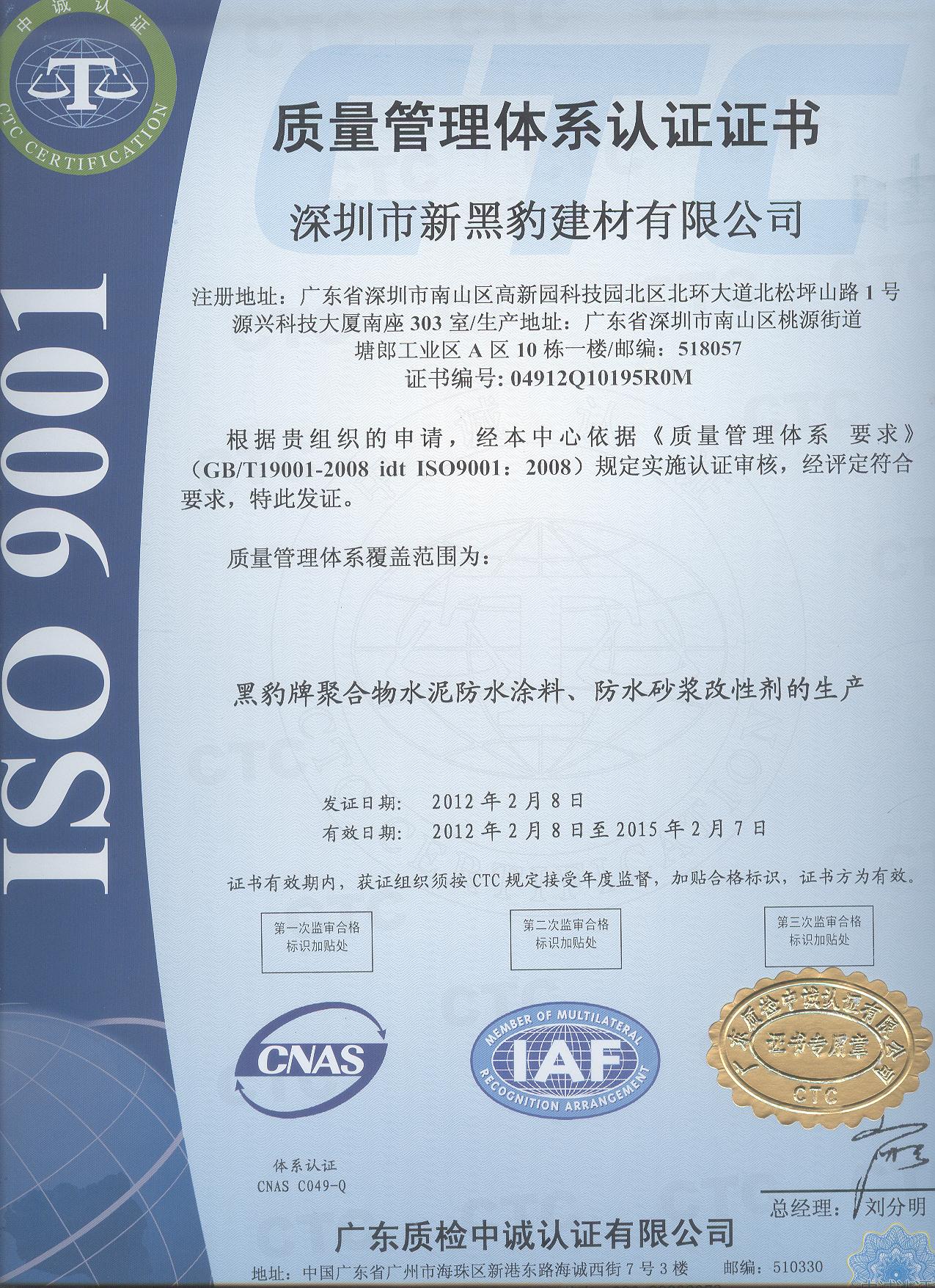 我公司2012年2月8日獲得ISO9001質(zhì)量管理體系認(rèn)證證書